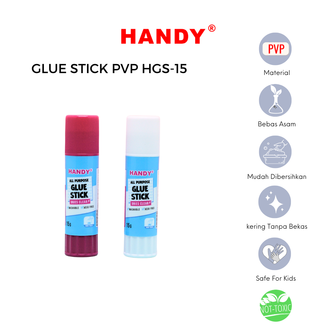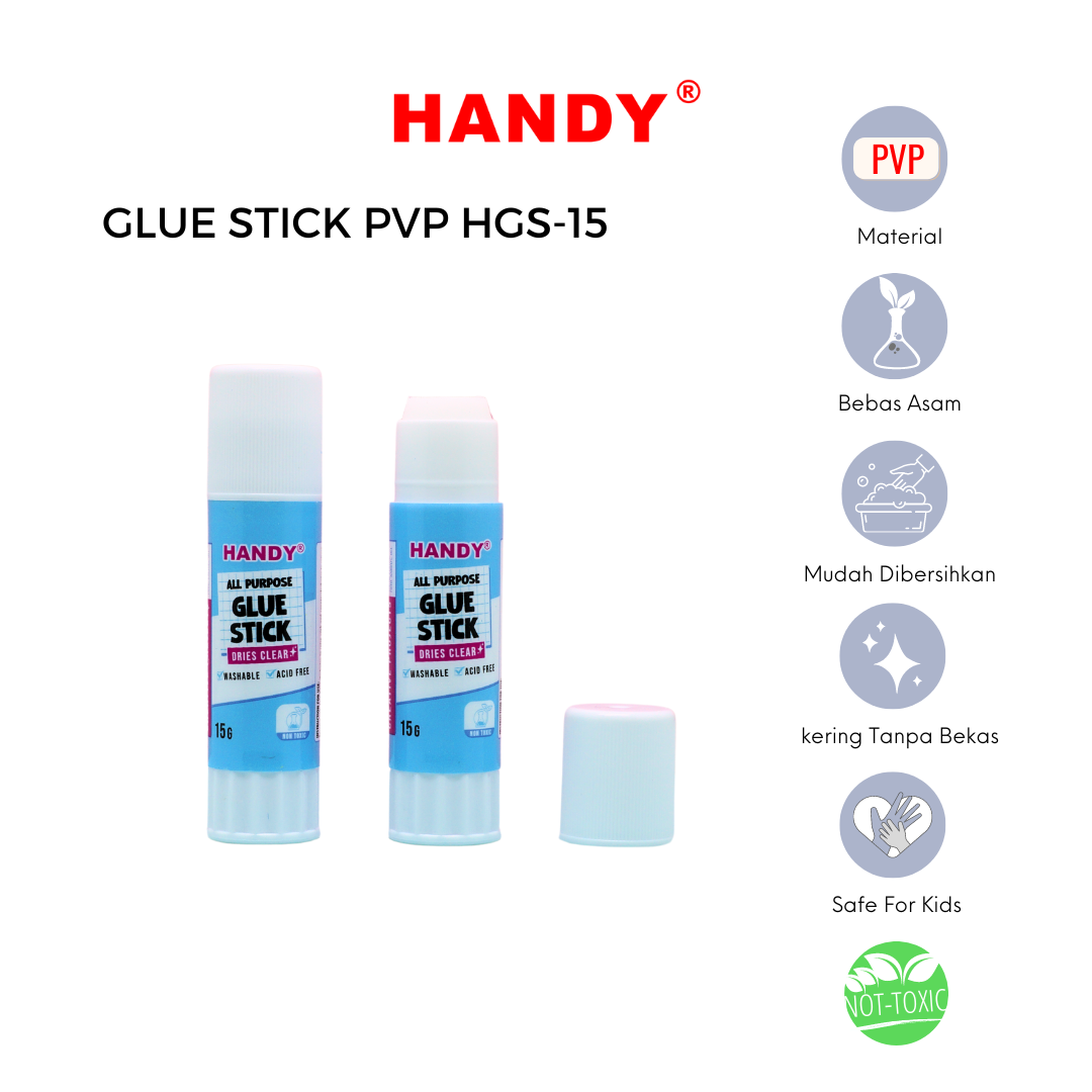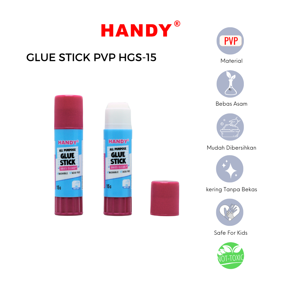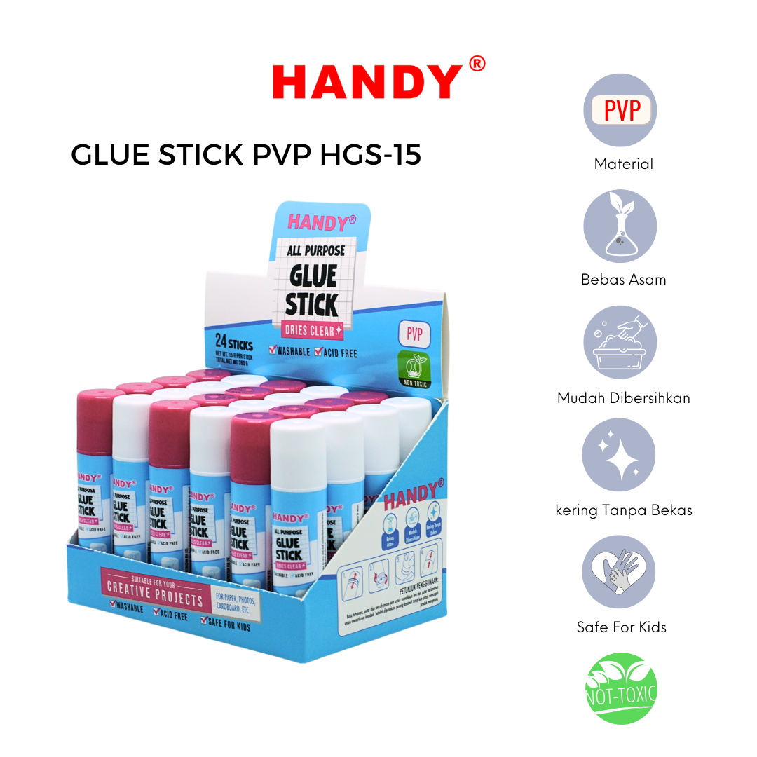 HANDY HGS-15 Lem Stick / Glue Stick Super Kuat PVP 15 Gram 1 Dus 24 Pcs