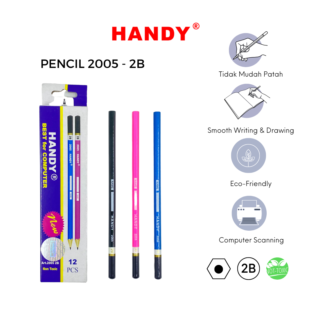 PENSIL HANDY 2005 – 2B Isi 12 PCS Pencil Sketch Gambar Writing Drawing