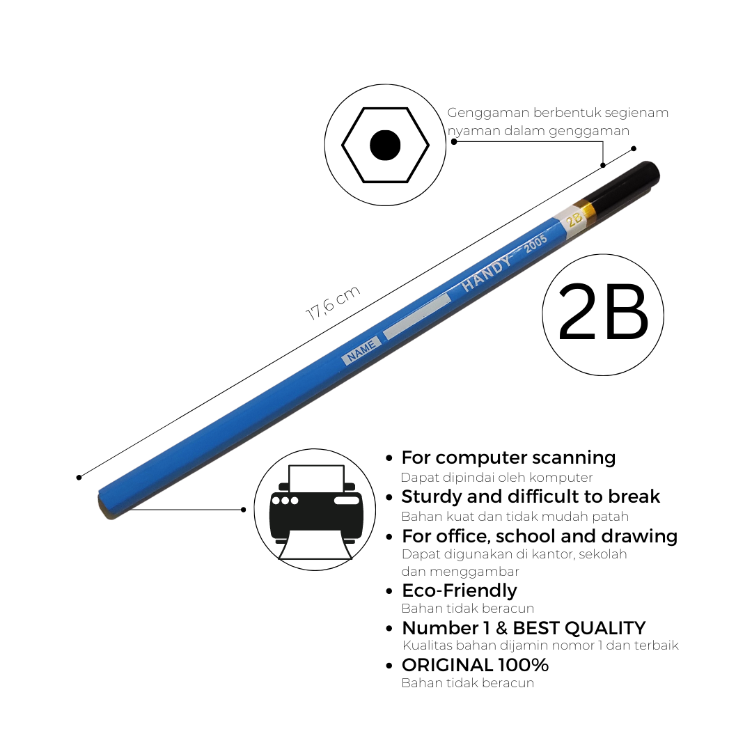Be the first to review “PENSIL HANDY 2005 – 2B Isi 12 PCS Pencil Sketch Gambar Writing Drawing”